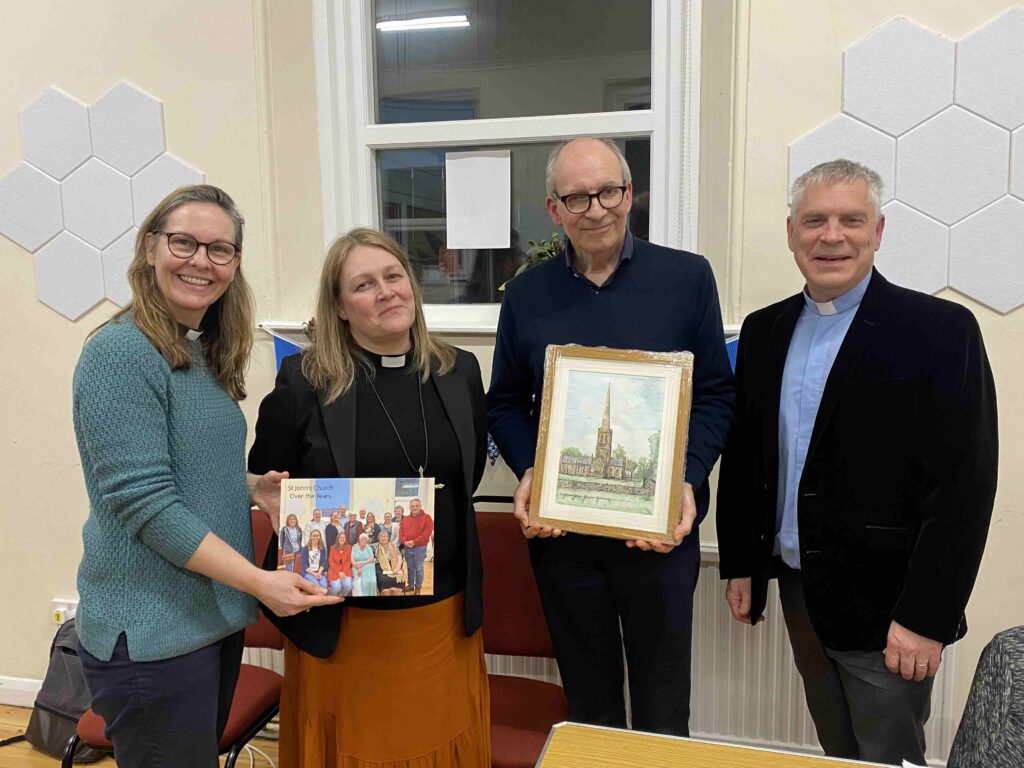 From that point on, Shaun has given himself generously to the life of the Church. For over 35 years he has served faithfully on the PCC, regularly leading worship and preaching, and offering a steady, thoughtful presence in parish life. Again, encouraged by Canon Gordon Taylor, Shaun trained to take funerals, and it soon became clear that this was a ministry to which he was particularly gifted. His compassion, sensitivity and ability to walk alongside those who were bereaved enabled him not only to support families pastorally, but also to help them celebrate the lives of their loved ones with dignity and care. Through building strong relationships with St John’s and local undertakers, this ministry grew to the point where Shaun was able to serve full-time as a funeral minister. He retired from this in 2024, having taken hundreds of funerals, with family members often requesting him again because of the care they received. Shaun continues to be an active member of St John’s, continuing to serve on PCC.