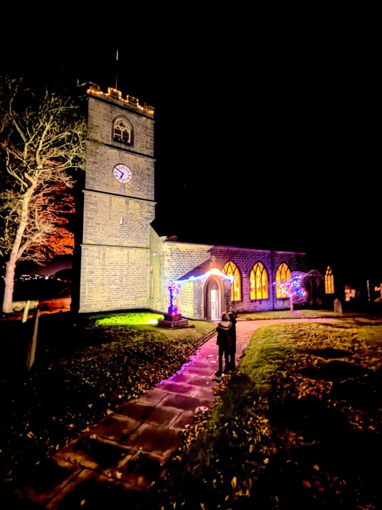 We put a lot of effort into making St Leonard’s presence in the community noticed over Christmas. We had an array of different Christmas outdoor lights for people to see as they were passing on the road or visiting. Coloured string lights in our churchyard tree, a lit up wooden cross on the stone cross-pedestal and string lights around the edges of the porch created a beautiful effect. Our bell ringers fixed string lights following the contours of the parapets on the tower top. These were visible from some distance away and we received favourable comments on social media. The Church of England St George flag was flying from our tower flagpole throughout the Christmas and New year period, we believe this makes a bold statement that the church is open for business.