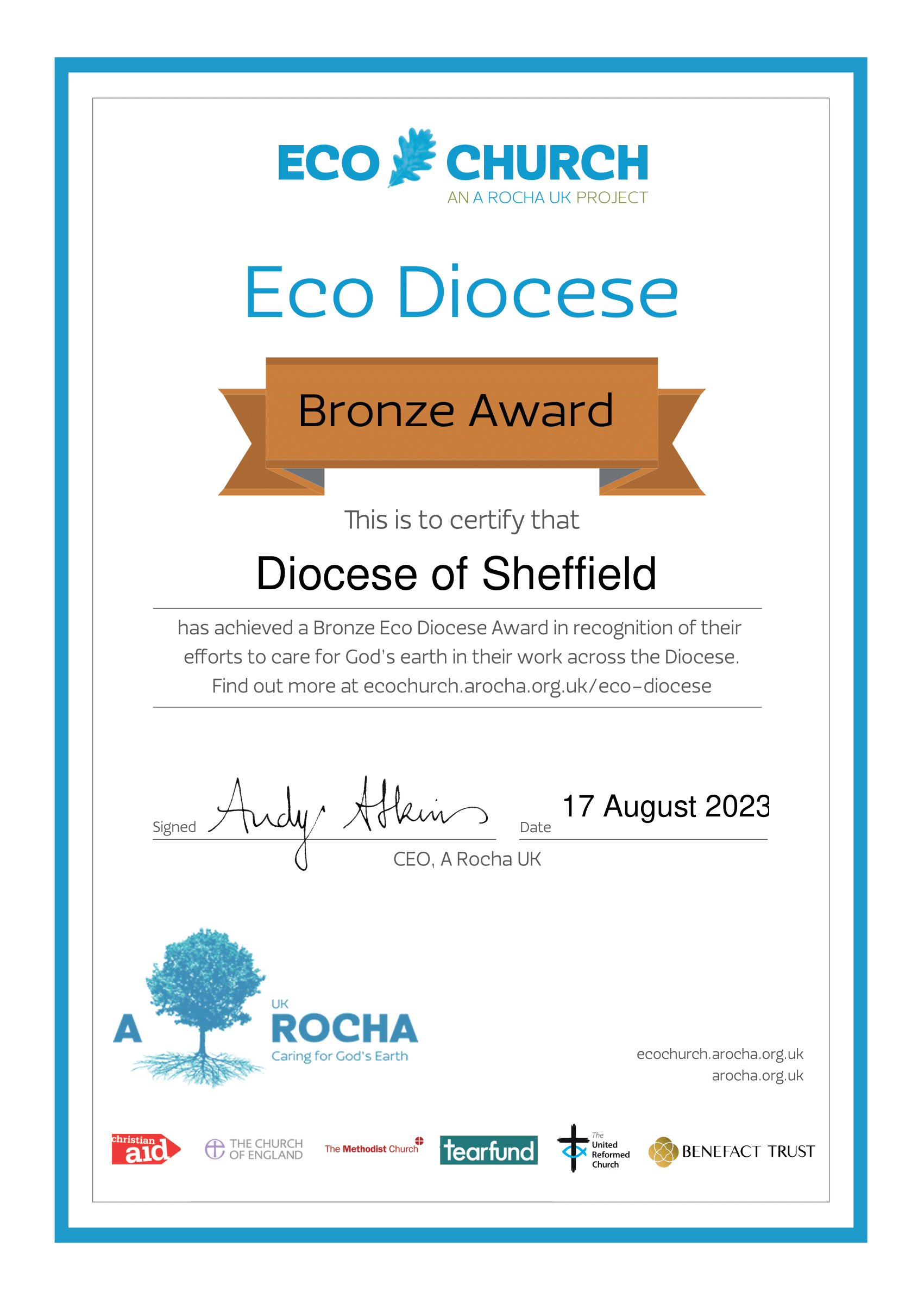 It is with great pleasure that we can announce we are now a Bronze Eco Diocese!