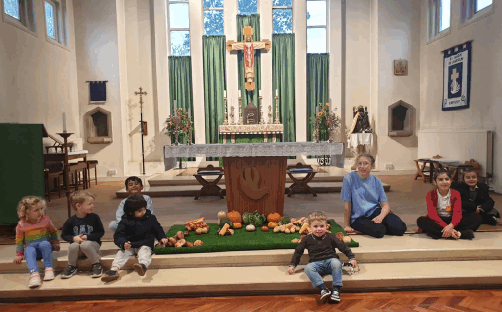 As newly authorised Focal Ministers in the Diocese of Sheffield, Michael Mcgonnell and I were invited to share our recent experience with the joint Deanery gathering last week. We reflected on how we arrived at—and delivered—a weekend of Harvest Festival celebration events at St Hugh’s New Cantley this October. From Messy Church on Thursday through a mix of events, we set out to arrive at an uplifting Harvest Festival Mass on Sunday. By then, church was resplendent with flowers and buzzing with excitement to pick a winner for the free food hamper.