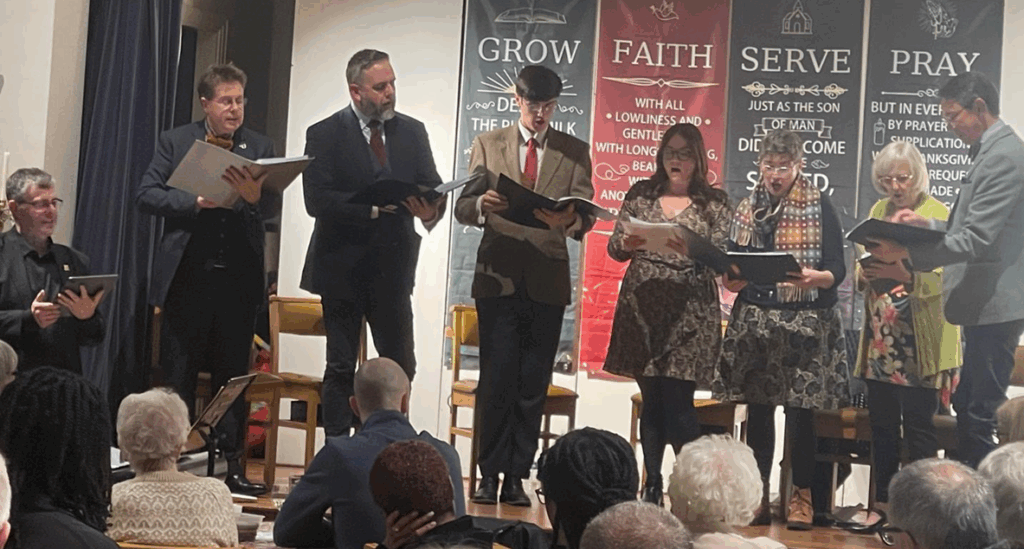 Saturday evening’s fundraiser featured a lively and eclectic music programme, from Thou Visitest the Earth to musicals, madrigals, blues, and favourites like O Happy Day and The Bare Necessities. (The three sets were intertwined with the Harvest buffet supper courses and a raffle.) Singing with friends old and new was a real treat and such a blessing and brought joy to the whole room.