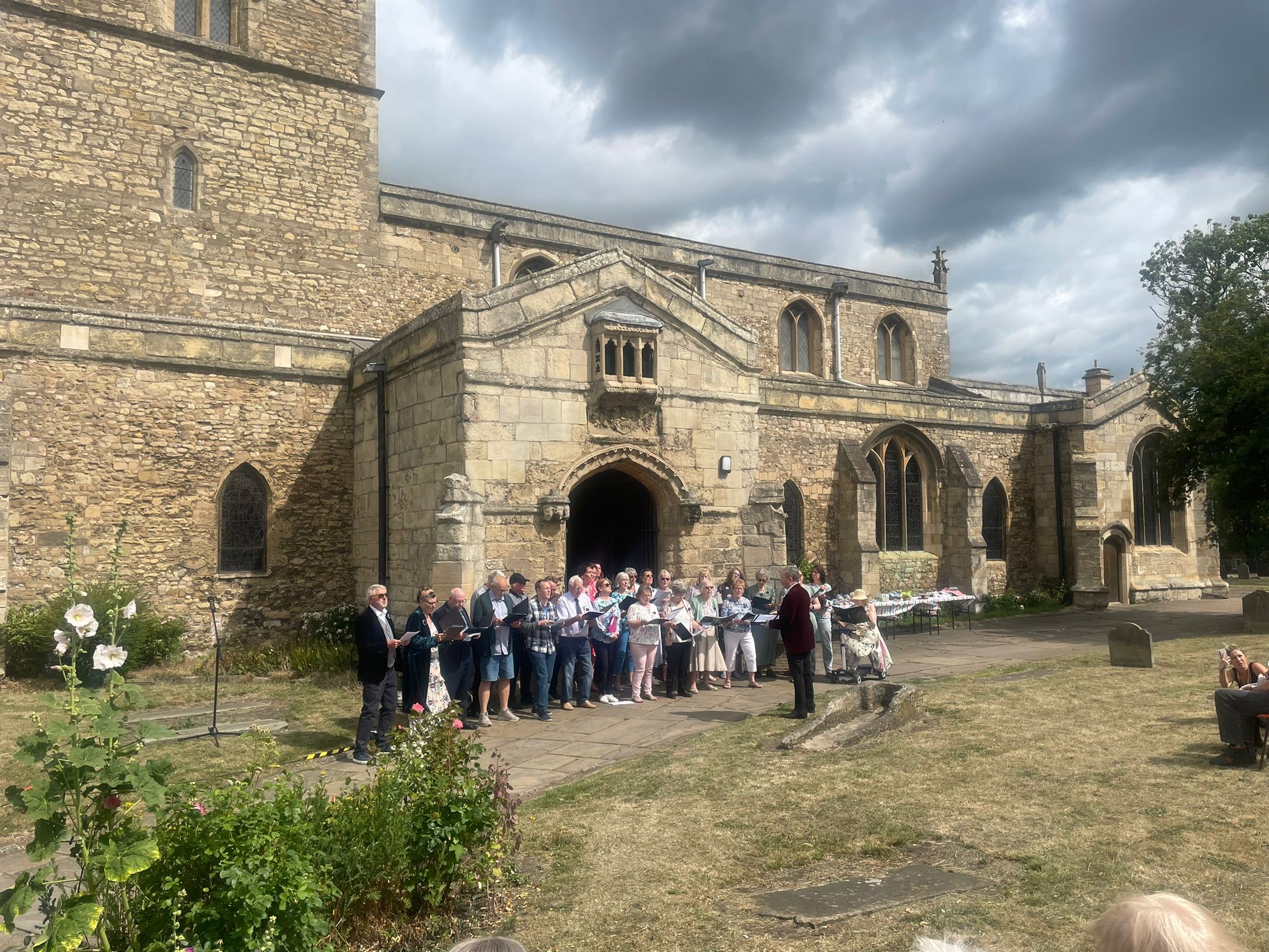 The fayre on the Saturday was a success, with an array of stalls raising over £800. The Sunday service was held in the sunshine and featured the recently launched Community Choir, who sang ‘Up on the roof’ as Tim was about the climb to the tower! This was followed by ‘You raise me up’ after the sermon (on Jacob’s ladder).